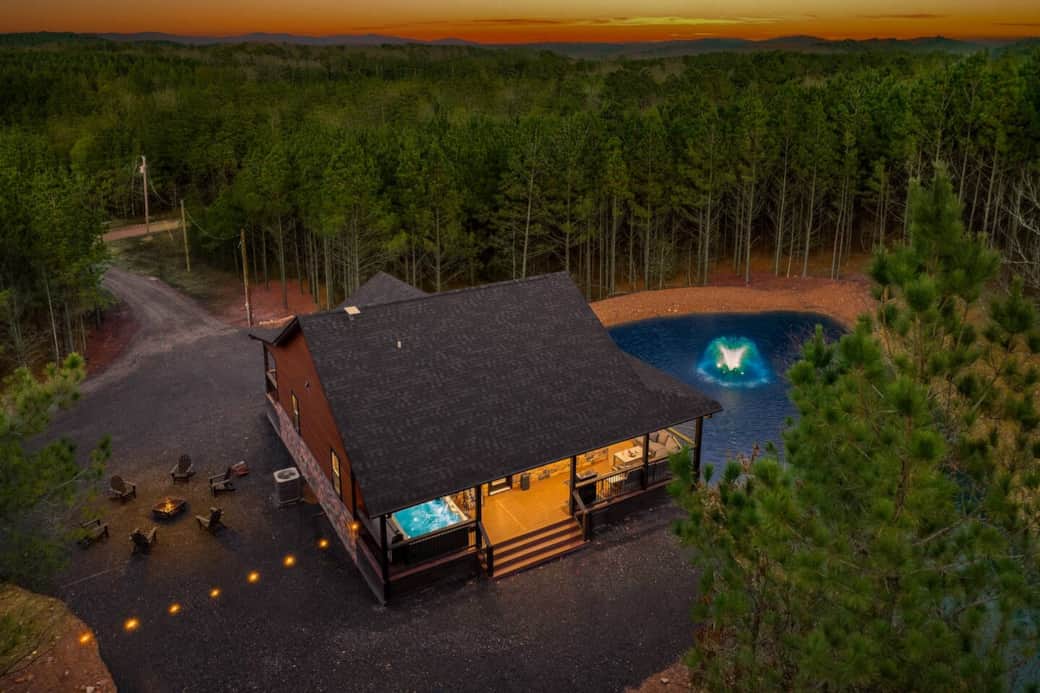 Time Well Wasted is a brand new, secluded 2-bedroom, 1-bath cabin near Wolf Pen Gap North Trail Head. Ride straight to the trails from the cabin, then unwind in the hot tub or around the fire pit. Enjoy a private pond and peaceful woods. This cabin is secluded, yet still only minutes from town.